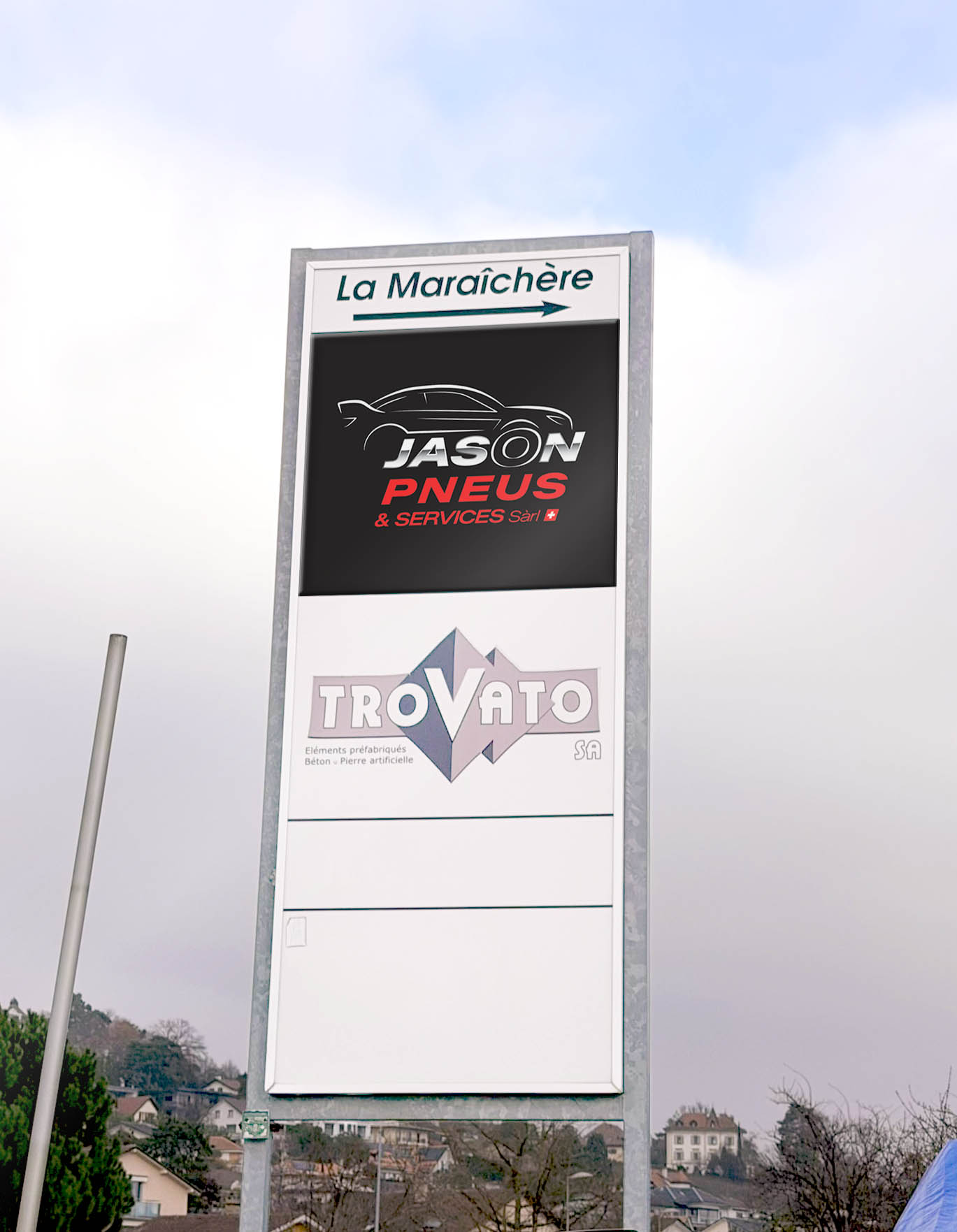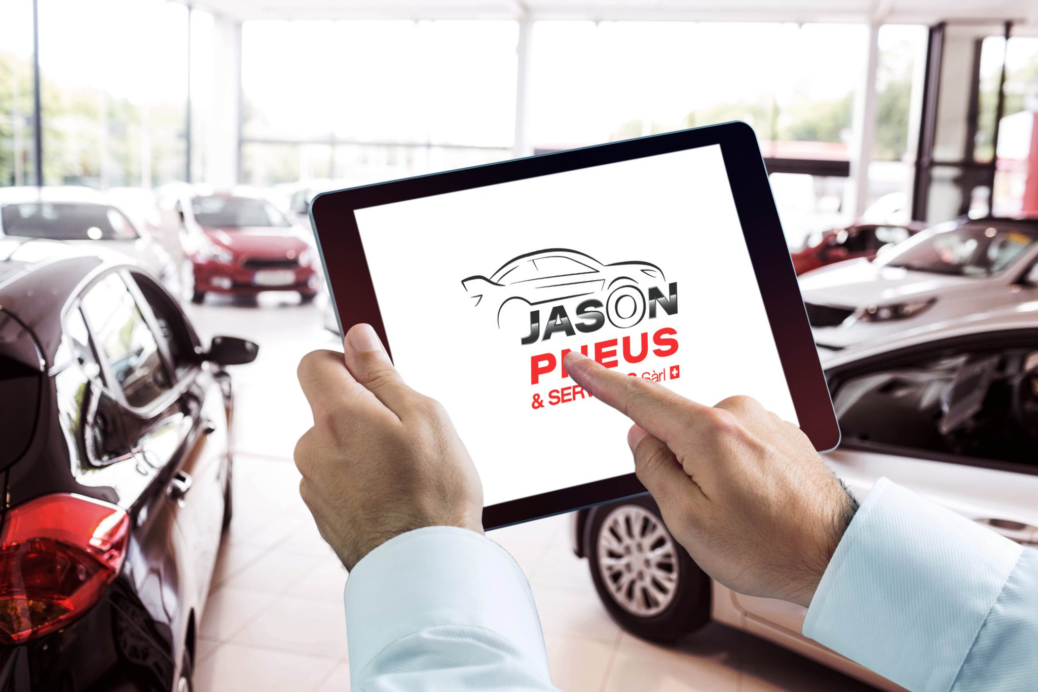 Pour Jason Pneus & Services Sàrl, nous avons conçu un logo sur mesure en accord avec les souhaits du client, qui désirait une identité visuelle dynamique dans des tons rouge et gris.